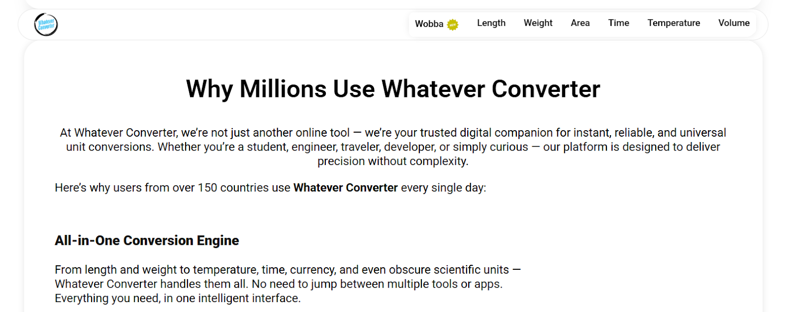 Serving users from students and educators to engineers, healthcare professionals, digital marketers, and global businesses, Whatever Converter has become a go-to choice for quick, dependable conversions.